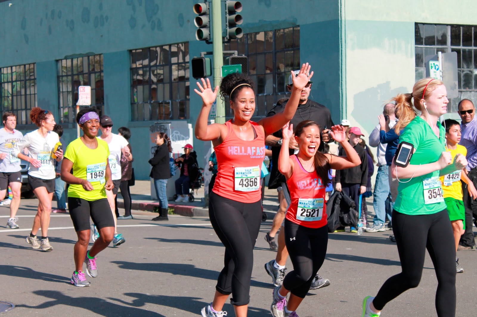 Having a great running partner was one of the key reasons why we both overcame the aches and pains and finished the race with no breaks in-between. Another motivating factor was my family driving all the way down from Sacramento, meeting up with my boyfriend, making signs, and cheering us on all throughout the race. We didn't know where they would be, but they surprised us on four different occasions and with each wave of encouragement, bursts of energy started bubbling and pushed us on. Strangers even filled us with loads of energy, endless cheering, cowbell-banging, bands playing, DJs posted up everywhere, flaming art structures, and lines of high-fives. We saw the funniest signs that put big ass smiles on our faces. They read, "Stop reading, keep running!" "Why do all the cute ones run away?" "Move yo ass!" "Just finish (that's what she said)!" I mean, how could you NOT laugh?!